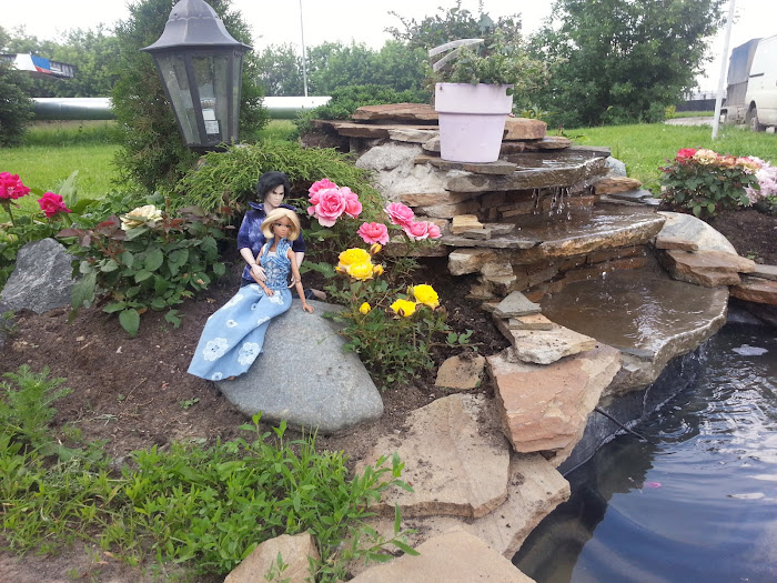 Я давно на этот минипрудик любуюсь. Обожаю небольшие водоемыОтличная прогулка у Клода с Ириной. Очень люблю эту пару. Понравился наряд Ирины и фото в цветах и у мини-прудика 1:6.