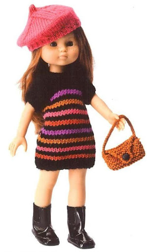 Комплект лля Паолки . Туника,берет,жакет и сумочка.(пересказ модели из журнала Tenues de Poupées)